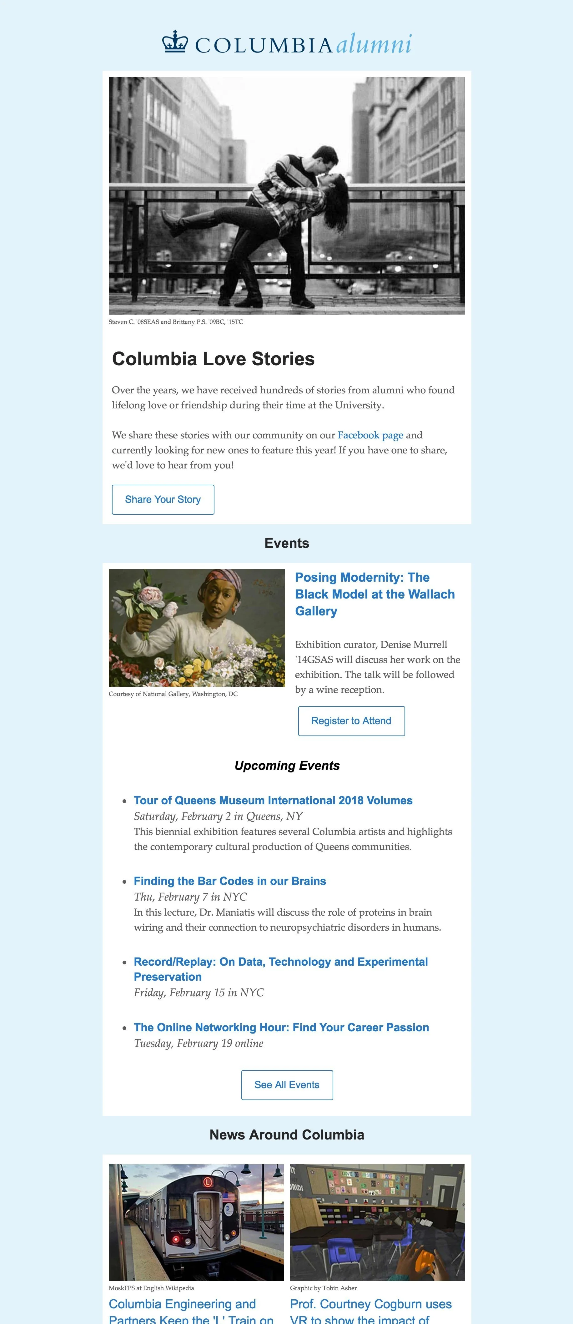 The Columbia Alumni Newsletter is the only digital experience that reaches the entire Alumni network - over 240,000 members, world-wide.